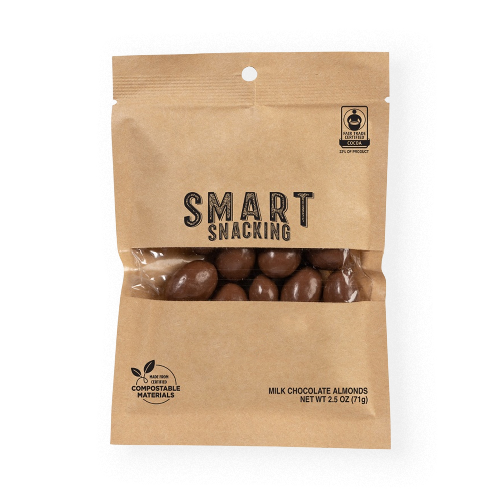 Fairtrade Milk Chocolate Almonds in Compostable Pouch - 2.5 oz